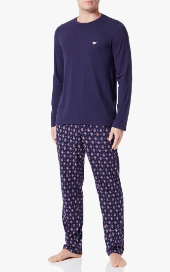 EMPORIO ARMANI HERREN-PYJAMASPULLOVER UND LANGE HOSE, BLAU MIT MUSTER