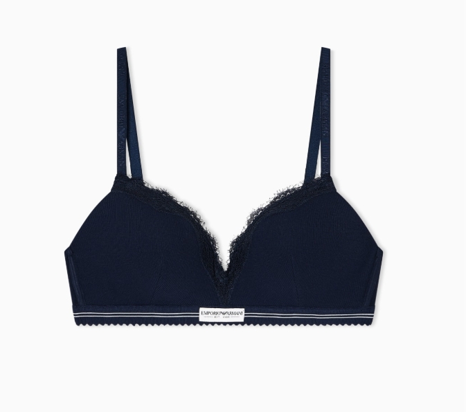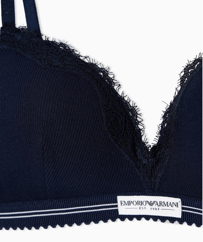 EMPORIO ARMANI Damen-Triangel-BH aus geripptem Baumwollgewebe mit Polsterung, Blau