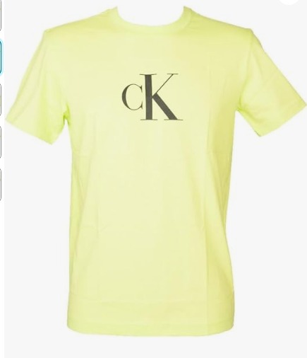 CALVIN KLEIN MEN'S SHORT SLEEVE CREW NECK T-SHIRT WITH INITIALS LOGO ON THE FRONT COLOR FLUO GREEN