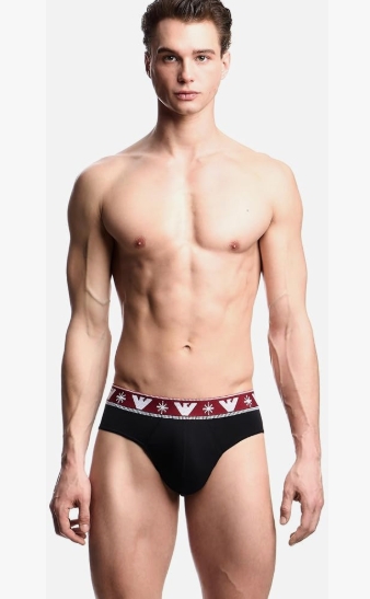 Emporio Armani Uomo slip bi-pack Holidays Jacquard colore nero e rosso.