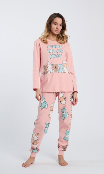 HAPPY PEOPLE DONNA Pigiama Happy Bear per notti di coccole e sogni avvolgenti 100% Cotone