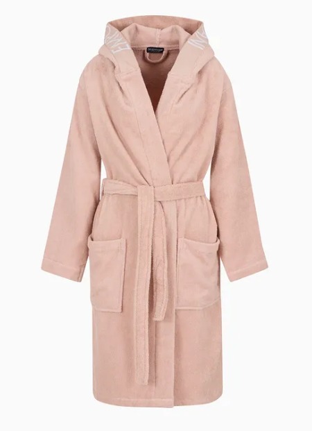 EMPORIO ARMANI DONNA ACCAPPATOIO CON CAPPUCCIO IN MICROSPUGNA DI COTONE COLORE ROSA CHIARO