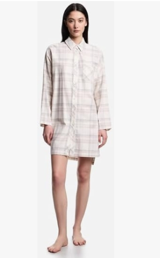Camisón con cuello clásico y botonadura frontal. Presenta un estampado integral de cuadros. Microáguila bordada en el pecho. Composición: 50 % algodón, 50 % viscosa Estampado integral de cuadros Cuello clásico Botonadura frontal Bolsillo de parche en el pecho Mangas largas Aberturas laterales Microáguila bordada Temporada otoño/invierno