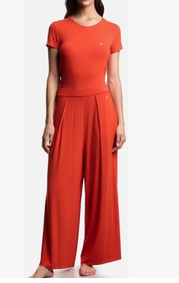 Pantalone donna, lungo ed ampio, morbido e comodo linea underwear. Colore rosso corallo, con logo, piccola aquila stilizzata in borchie di metallo, simbolo inequivocabile di Emporio Armani,stile ed eleganza nel mondo. Dettagli prodotto: Composizione materiale95% Viscosa, 5% Elastan Istruzioni di lavaggioLavabile in lavatrice Stagione: primavera estate.