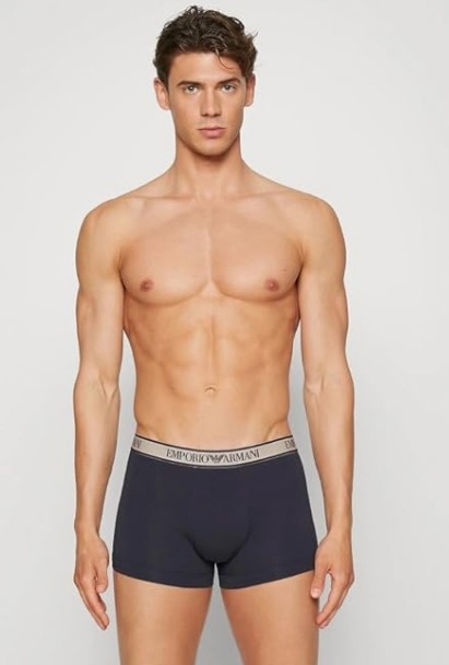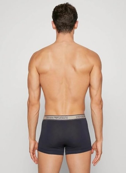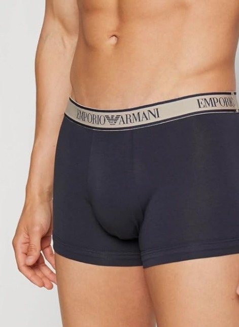 BOXERS STRETCH TRI-PACK EMPORIO ARMANI POUR HOMMES COULEUR BLEU MINUIT. SABLE. BLEU AVEC FANTAISIE.