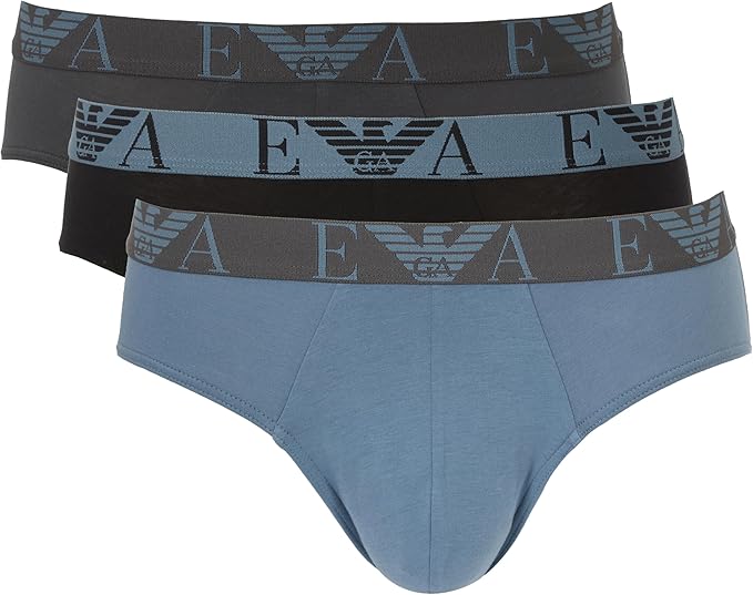 SLIP TRI-PAC POUR HOMME EMPORIO ARMANI STORM, AIMANT ET COULEUR NOIRE, AVEC ÉLASTIQUE CONTRASTÉ AVEC LOGO