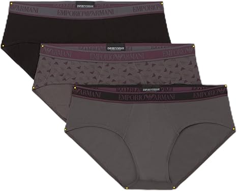 EMPORIO ARMANI TRI-PACK SLIPS HOMME COULEUR NOIR AIMANT AVEC LOGO MICRO-MOTIF