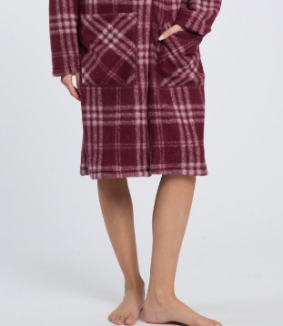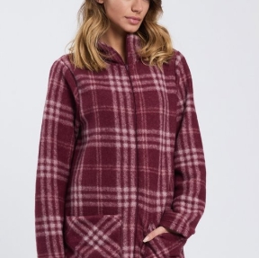 Peignoir zippé femme HAPPY PEOPLE - Carreaux bordeaux