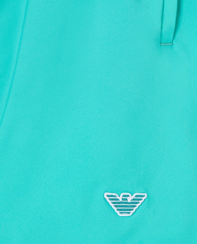 Short avec taille ajustable par cordon de serrage, poches latérales pratiques et un micro-écusson brodé de l'aigle iconique en bas à gauche. Entièrement en polyester, y compris le tissu des poches et la doublure. Détails : taille ajustable par cordon de serrage, poches latérales, micro-écusson aigle. Idéal pour le printemps et l'été.