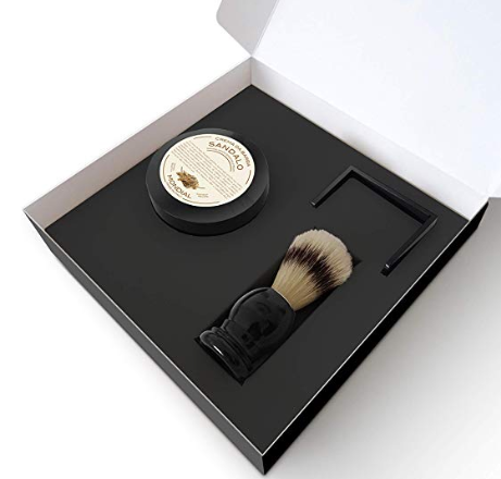 Set, cepillo de pelo de tejón, portaescobillas y jabón de afeitar de sándalo de 125 ml.