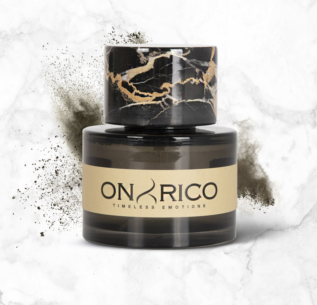 Chiude il flacone un tappo in pregiatissimo marmo Portoro. Il colore nero intenso e le venature dorate richiamano alla mente le sontuose corti imperiali d’Oriente.