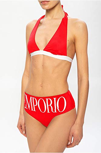 EMPORIO ARMANI MAILLOT DE BAIN FEMME MER ET PISCINE BIKINI ROUGE ET BLANC AVEC LOGO SUR SLIP HAUT