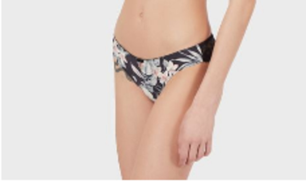 Emporio Armani für Frauen.Dunkelblaue brasilianische Slips mit Blumenmuster und Logo-Medaille auf der Vorderseite.Superweiche Spitze auf der Rückseite. Charmant mit Spitze. Elegante, raffinierte, hochwertige Dessous.Zusammensetzung 100% Lycra.Geeignet für alle Jahreszeiten. Kombinierbar mit einem dunkelblauen BH mit Blumen- und Lochmuster
