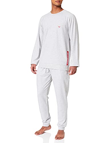 Emporio Armani man, light gray suit, with red inserts.Round neck, long sleeves, and trousers with drawstring and ankle cuff.Comfortable and elegantly casual clothing,brushed cotton.Ideal for sports and casual wear signed "Armani".Composition 95% cotton 5% elastaneSpring summer season.