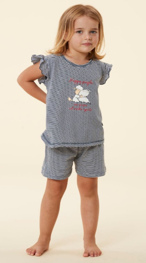 Pijama de niña con pantalón y camisa de manga corta, cuello redondo.