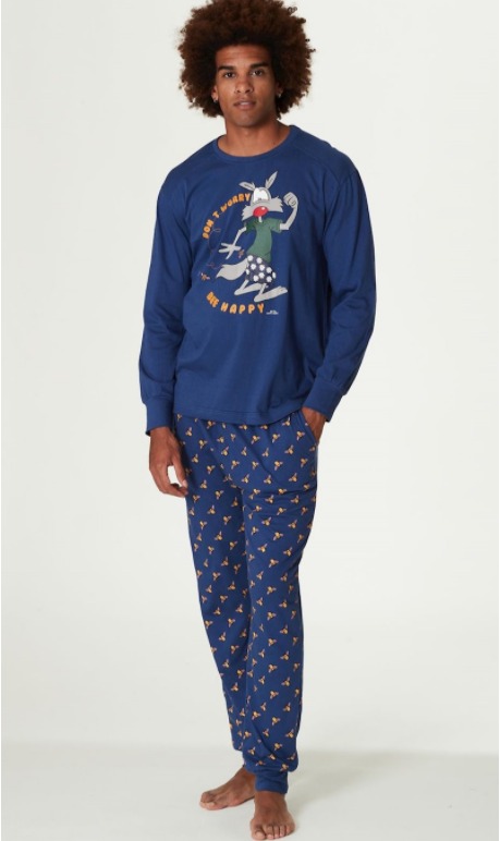HAPPY PEOPLE UOMO PIGIAMA MANICA LUNGA, SCOLLO TONDO, PANTALONE LUNGO, SERIE "BEE" BLU NAVY