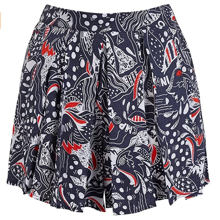 Pantaloncino corto in cotone modal, colore blu con stampa in fantasia, fresco tessuto di cotone