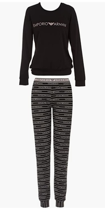 Pigiama completo donna, maglia girocollo con logo centrale, colore nero. Pantalone base nera, rigato rosa cipria con logo. Nero/Logo Collezione cotone stampato Maglione e pantaloni 95% Poliammide, 5% Elastan Chiusura: pull on. Lavabile solo a mano Set pigiama in cotone stampato e pantaloni Stagione: autunno - inverno
