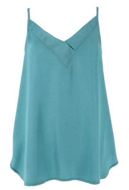 Top sin mangas en viscosa, soft fit, con escote en pico y tirantes finos regulables.