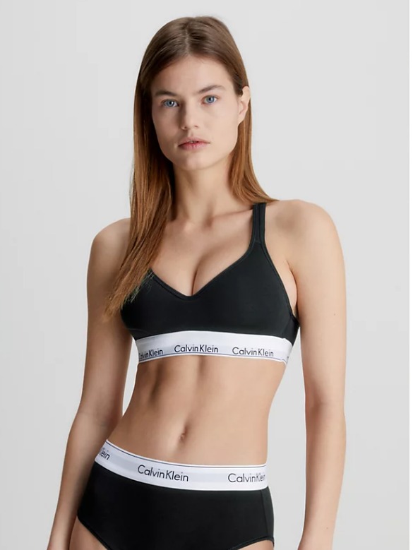 Sujetador bralette negro.Si buscas comodidad, tejidos transpirables y un look deportivo, elige nuestra icónica línea de ropa interior de ALGODÓN MODERNO. • mezcla de algodón modal • copas de forma suave • acolchado para un ligero efecto lifting • modelo cruzado en la parte trasera, sin cordones • banda elástica debajo del busto icónica de Calvin Klein Composición: 53% algodón 35% modal 12% elastanolavar a maquinano secar en secadoraajuste normal
