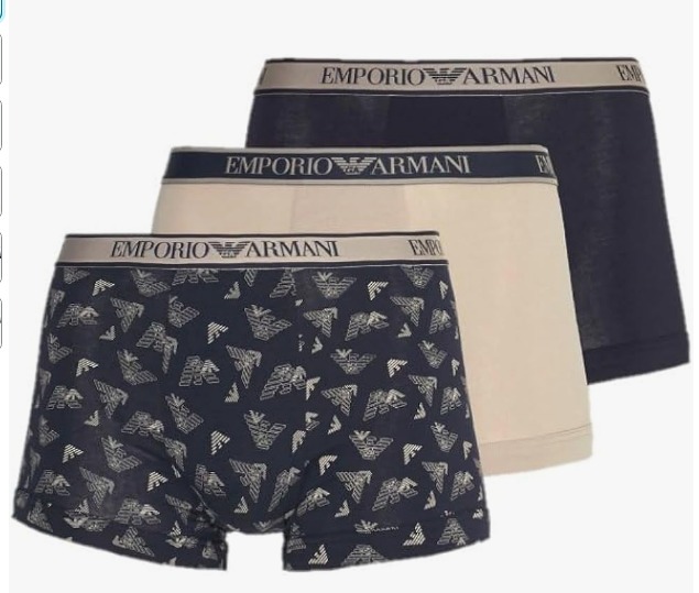 Boxer tri-pack (confezione da tre) in fibra di cotone elasticizzato naturale, colore blu notte sabbia e blu con fantasia logo. Elastico logato a contrasto. Composizione: 95% cotone 5% elastan Chiusura: pull-on Lavabile in lavatrice Classico Set da 3 pezzi Vita regolare