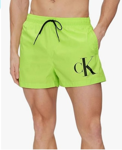 CALVIN KLEIN MEN'S SWIMMING BOXER WITH DRAWSTRING AT THE WAIST, FLUO YELLOW COLOR AND LOGO ON THE LEG