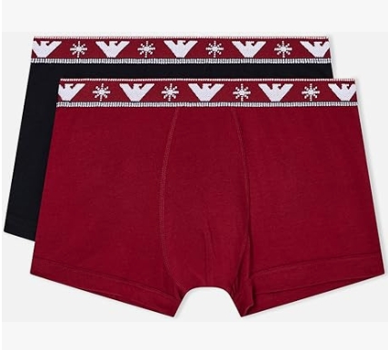 Boxer Jacquard Vacances Emporio Armani pour homme, noir et rouge.