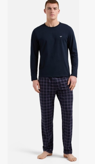 EMPORIO ARMANI UOMO PIGIAMA IN COTONE BLU E SCACCHI