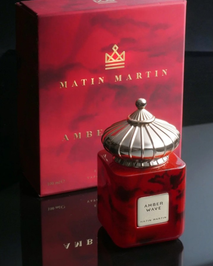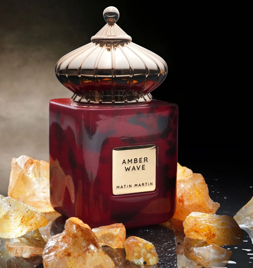 mber Wave di Matin Martin celebra la calda magnificenza dell’ambra con un viaggio olfattivo che parte da un’esplosione agrumata‑speziata: la polpa d’arancia illumina la profondità preziosa dello zafferano, regalando un’apertura luminosa che ricorda il bagliore di un tramonto sul deserto. Nel cuore, la sensualità vellutata del gelsomino si fonde con una sfumatura gourmand di note zuccherine, mentre la pelle scamosciata avvolge il bouquet con eleganza tattile. Il fondo si distende su onde di ambra cremosa, cuoio caldo e ambroxan minerale, creando una scia persistente (8‑10 ore) che ondeggia come dune dorate nel vento. Proposto in formato Eau de Parfum 100 ml, Amber Wave è unisex e adatto a chi desidera un profumo ricco, avvolgente e sofisticato, perfetto per serate speciali o per dare un tocco di opulenza alla routine quotidiana. Il flacone, minimalista ma impreziosito da dettagli metallici, riflette la dualità della composizione: luce e ombra, dolcezza e cuoio, freschezza e calore.